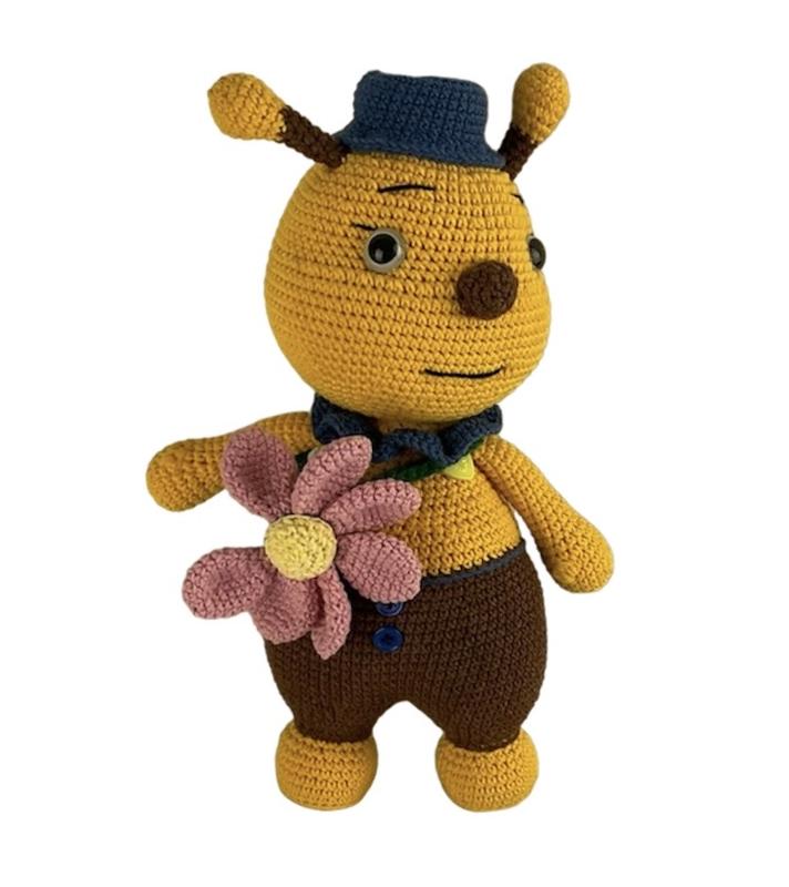 Игрушка выполнена из нитей полу хлопка. Размер 28 см. Глаза у игрушки на безопасном креплении