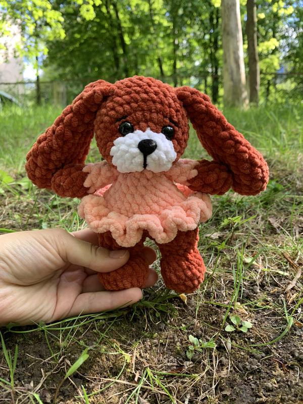 Маленька ігрушка собачка • Зріст: 16 см; • Наповнювач: холлофайбер; • Очки, носик на безпечному кріпленні • Плюшева пряжа для дітей від 0+ • Можливий повтор в других кольорах • Догляд: витирати серветками, можна обережно прати вручну