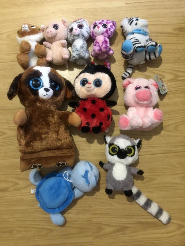 Мягкие игрушки окатики, новые и б/у. Описание: тигр, новый TY, высота 14 см, цена 100 грн, свинка TY, б/у, высота 15 см, состояние добрый, цена 50 грн, кошечка с бантиком TY, б/у, высота 16 см, состояние хорошее, цена 50 грн, тигриня с подвеской, б/у,висота 17 см, состояние хорошее, цена 50 грн, леопард TY, б/у, высота 15 см, состояние хорошее, цена 50 грн, свинка новая, высота 20 см, цена 100 грн, собака TY, б/у, высота 30 см, состояние хорошее, цена 70 грн, солнышко, TY б/у, высота 28 см, состояние идеальное, цена 70 грн, енот, б/у, высота 19 см, состояние хорошее, цена 50 грн, черепаха подвесная Nicky Toy, б/у, состояние хорошее, длина 25 см, цена 50 грн. Енотик и серая кошечка проданные.