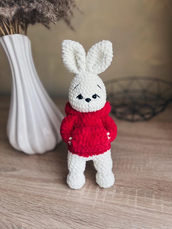Зайчик у худі Розмір:~25 см Виготовлені з гіпоалергеної пряжі; великі красиві очі; наповнювач холофайбер; Кольори на будь який смак та уподобання; Безпечний для діток віком 0+ ; Ціна 560 грн