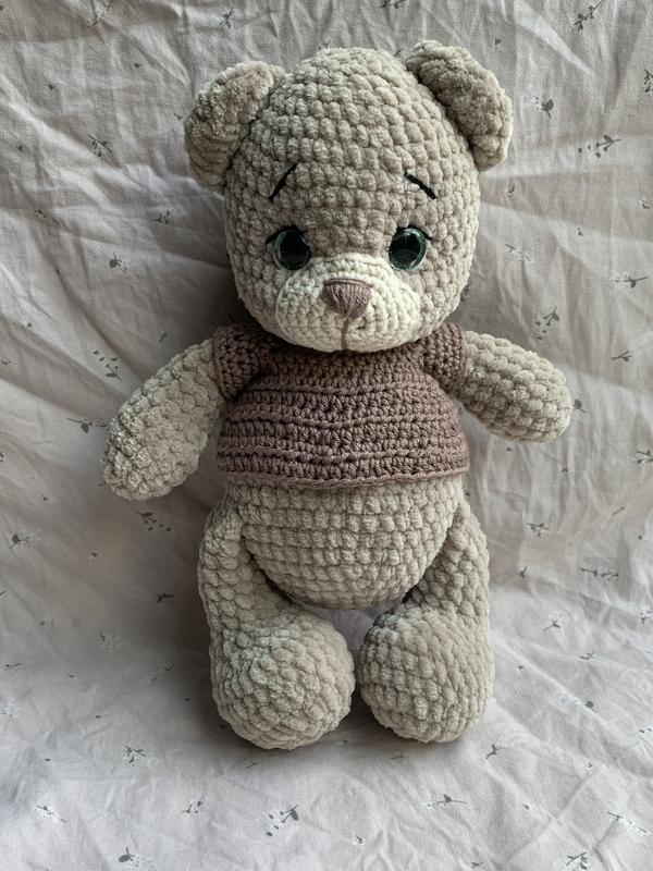 Вʼязаний ведмедик. Из гипоаллергенной пряжи (плюш) Глаза на безопасном креплении Наповнювач холлофайбер Рост игрушки 24 см