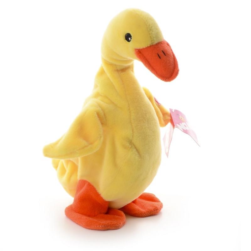 Цей гусак звичайно не з казки про трьох веселих гусей, які жили у бабусі, але малюкам він сподобається з першого погляду. Яскраво-жовтий гусак з помаранчевим носиком і лапками, через свої компактні розміри, не займе багато місця в кімнаті вашого маля, також він дуже приємний на дотик і зовні дуже схожий на справжнього. Він вміє заспівувати веселу пісню і ходити, якщо ви хочете все це побачити, необхідні батарейки АА 1,5 В (не входять в комплект). Під тулубом птаха знаходиться коробочка, в яку і можна помістити батарейки, також там є кнопочка включення і виключення. Не думайте, що ви купите цього гусака, для того щоб він просто стояв у вашої дитини в кімнаті, ні, він щомиті розважатиме дитину і всю вашу родину. З такою іграшкою кожна хвилина буде наповнена цікавими і корисними діями. З цим гусаком малюк може придумувати безліч ситуацій, сюжетів, він може піклуватися про нього, лікувати, навчати, гуляти. Граючи з такою іграшкою, малюк вчиться самостійно розвиватися, а також швидше запам'ятовувати, бути уважним, зосередженим, турботливим, він тренує рух рук і всього тіла. Іграшка виготовлена зі штучного хутра, нешкідливого для здоров'я дитини. Рекомендується для гри дітям до 3 років. Тип живлення: AA-3шт