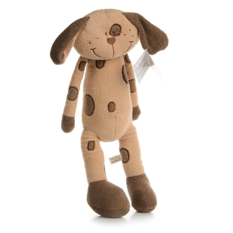 Ви не можете своєму малюку подарувати справжню собаку? Купивши м'яку іграшку у вигляді собаки, звичайно, ви не заміните нею справжнього вихованця, але все ж дитині сподобається з нею грати. Завдяки її незвичайному зовнішньому вигляду, вона не зможе загубитися серед інших іграшок дитини. Бежева собака, з коричневими цятками, вушками і лапками стане кращим другом для вашого малятка. З цієї собачкою можна придумати багато цікавих ігор, наприклад, дресирувати, лікувати, виховувати її. Собачка може лежати, сидіти, а за допомогою підтримки рук і стояти. У собачки дуже мила і життєрадісна посмішка, яка буде кожен день заряджати оточуючих оптимізмом і позитивом. Собачка невеликого розміру, м'яка і така приємна на дотик. З такою собачкою можна ходити на прогулянки, давати різні команди і весело проводити час. Гра з м'якою іграшкою розвиває у дитини дрібну моторику рук, кмітливість, сприйнятливість, доброту, відповідальність, турботу, чуйність. Зовнішня частина собаки виготовлена зі штучного хутра, а внутрішня набита силіконовим волокном. Грати з м'якою іграшкою можна діткам старше 3 років.