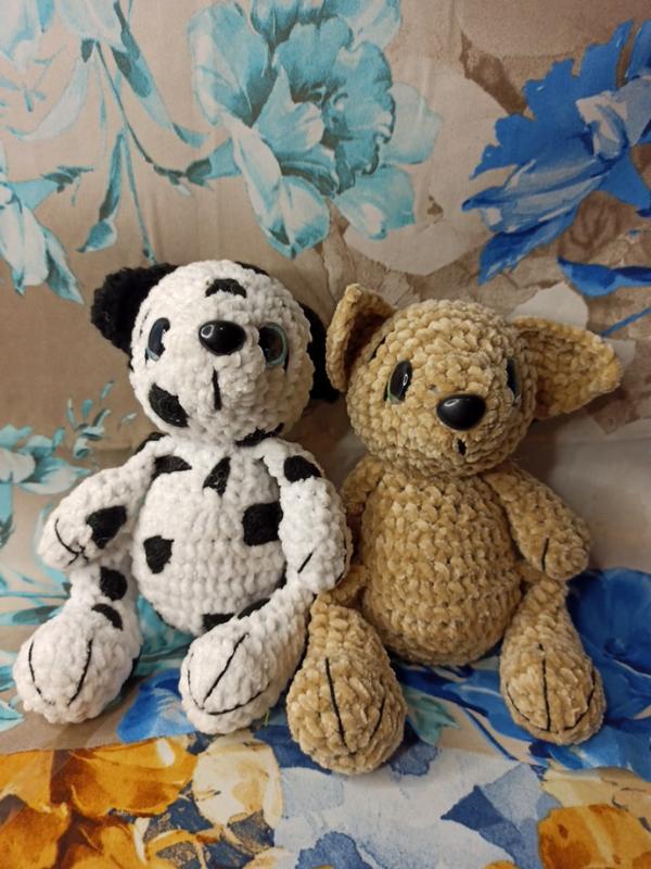Вязаная, мягкая игрушка "далматинец и лабрадор"