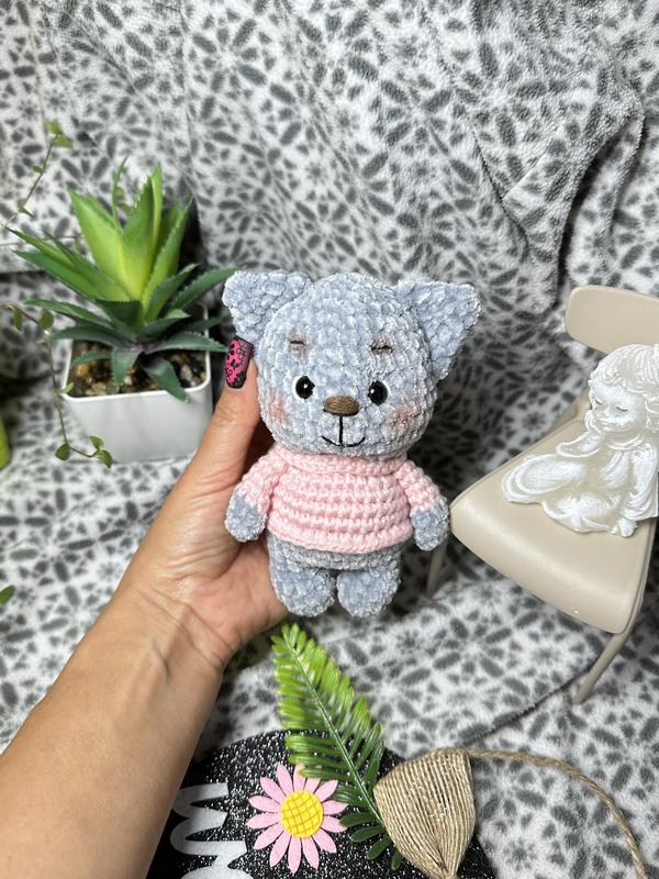 Вязаный котик крючком из плюшевой пряжи, наполнитель холлофайбер, глаза пластиковые на безопасном креплении, носик вышитый. Размер котика около 15см. Очень приятный на ощупь, отличный подарок или дополнение к подарок на любой праздник. Если есть вопросы - пишите с радостью ответьте 💌