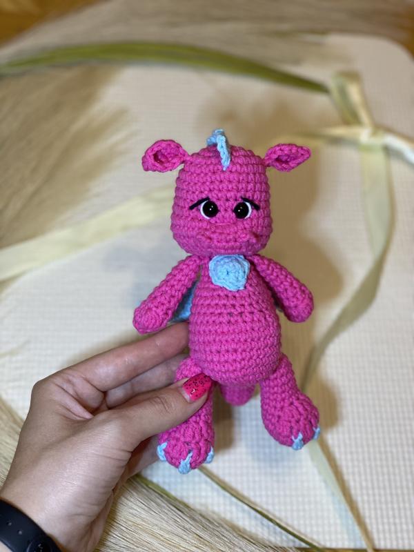 Рожева принцеса. Полностью безопасна для детишек. Глаза на безопасном креплении, наполнитель халафайбер, ниточка 100% хлопок. Довжина 16 см, ширина 5 см.