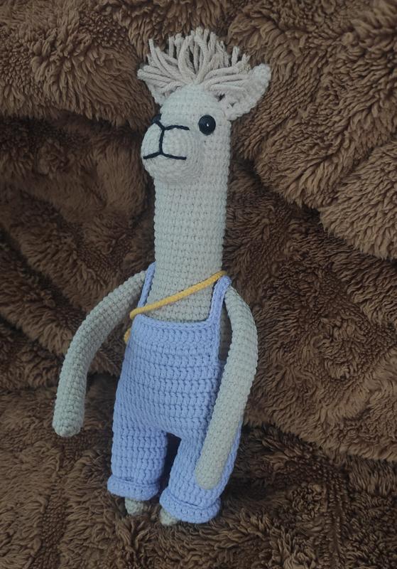 Вязаная игрушка в виде Жираф. Длина 23 см.