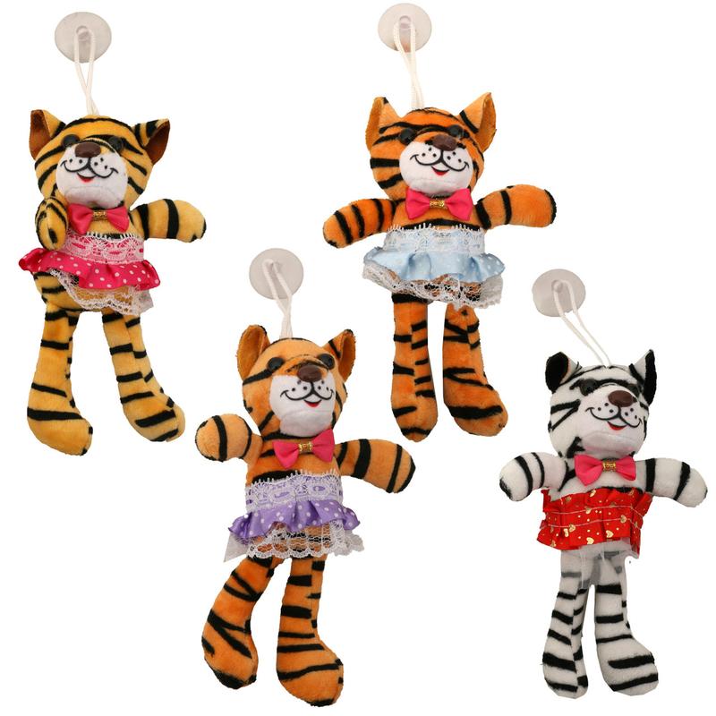 М'який брелок Тигр, 4 кольори. Тваринка в спідничці та з метеликом. Матеріал - плюш. Є ланцюжок - присоска. Упаковка - пакет. Розмір - 21х10х21 см.
