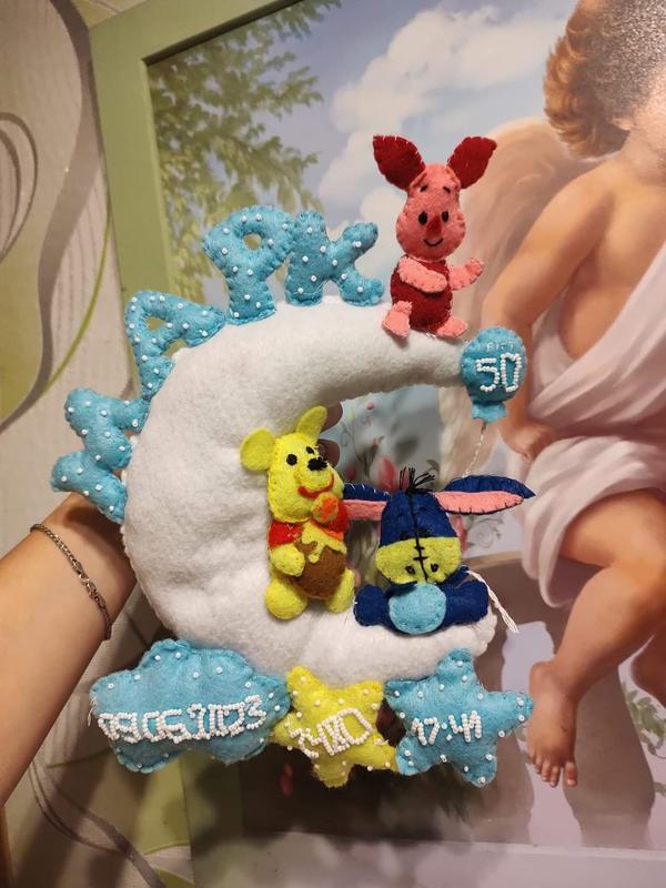 пошиваем по вашему желанию, имени,дата, времени, рост,вес малыша. Можно вышить бисером. это отличный подарок, на выписку, крестовины и иншие события. Такой подарок сохранит в памяти самый важный день в жизни всех родителей ❤️