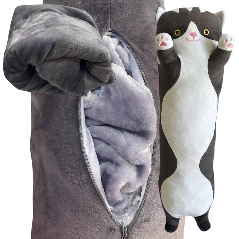 Мягкая игрушка подушка обнимашка с пледом 3 в 1 кот батон темно серый 75 см м123/2