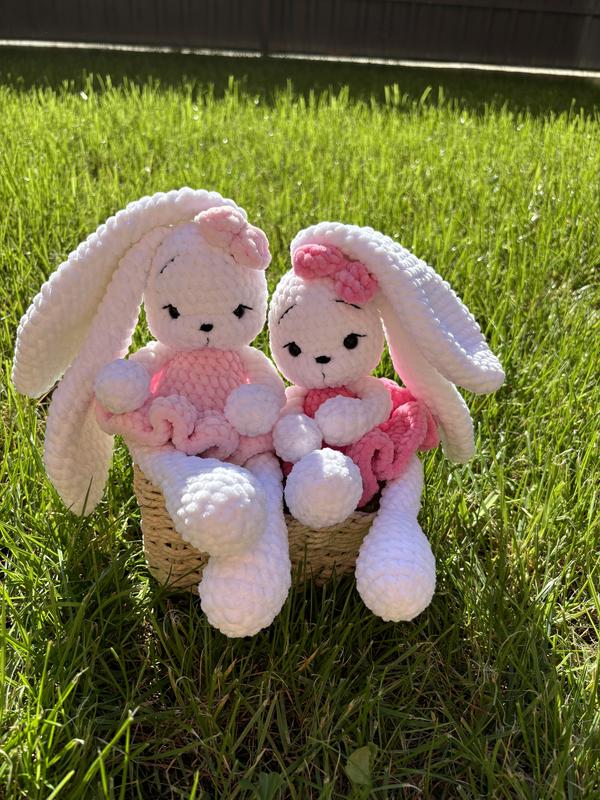 Зайка 30 см, якісна гіпоалергенна пряжа, очі на безпечному кріпленні