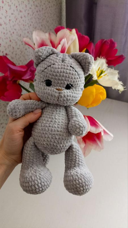 Котик из плюшевой пряжи изготовление в других цветах под заказ шортики дополнительно +60 грн.