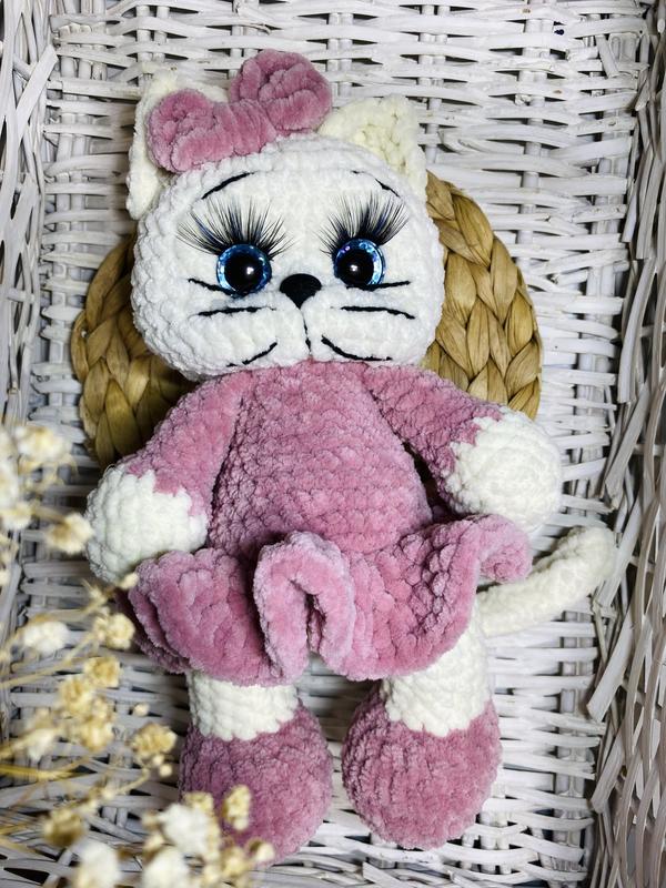 Игрушка ручной работы котик,котик из плюша, именноя игрушка с метрикой, вязаная игрушка, в...