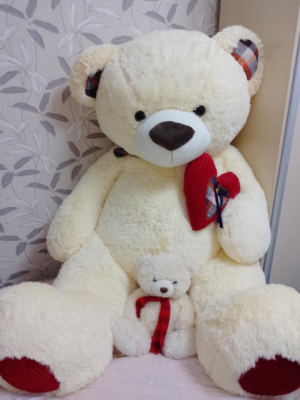 Большой новый медведь на подарок Состояние нового Качественные материалы Большое туловище и маленькие лапы Мягкий и приятный на ощуп В подарок маленький медведь