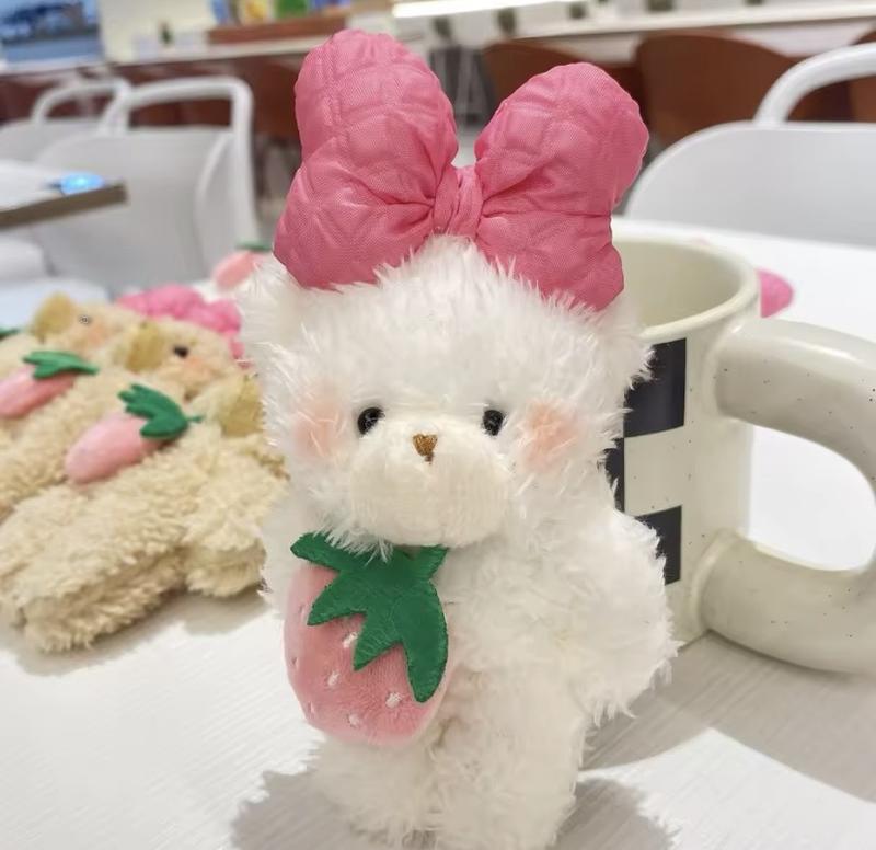 В наличии. Отличного качества . Брелок плюш медведь с розовым бантом и клубникой . Пересылаю