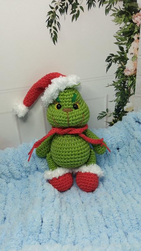 Мистер Гринч мини Полухлопковая пряжа Высота 15 см + 2-3 см чёлка Можно сделать как брелком так и игрушкой на елочку!