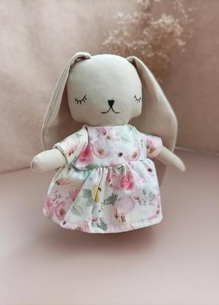 мягкая игрушка ручной работы, зайчик. Висота: 22 см. Ручки подвижные. Лицо вышито вручную. Іграшка без маленьких детелей. Безопасна для малышей Возможен пошив ушек однотонными или из ткани с принтом.