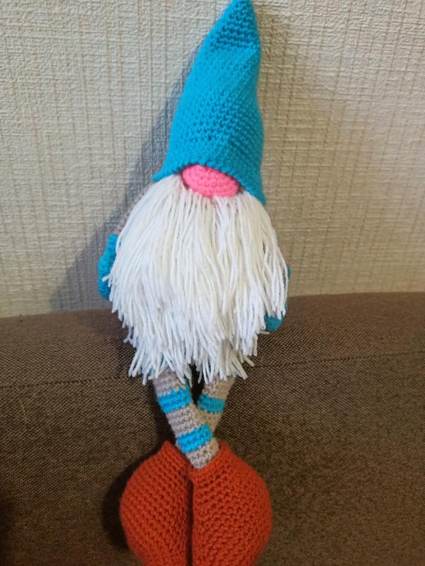 Милый яркий гномик станет отличным подарком на любой возраст к рождественским и новогодним праздникам. Добавит праздничного настроения и украсит интерьер. Игрушка связана из акрила, наполнитель - холлофайбер. Не боится стирки. Высота гномика от ботиночка до верхушки колпачка 34см С нетерпением ждет ваше приглашение.