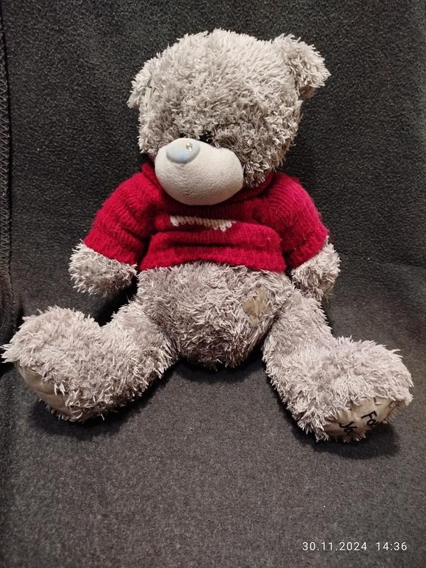 Классная мягкая игрушка в очень хорошем состоянии. Свитер снимается, нос немного потёртый. Высота мишки в сидячем положении 30 см. Модель 5399