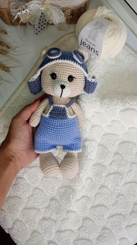 Вязаный мишка из хлопковой пряжи, длиной 24 см, наполнитель синтепон