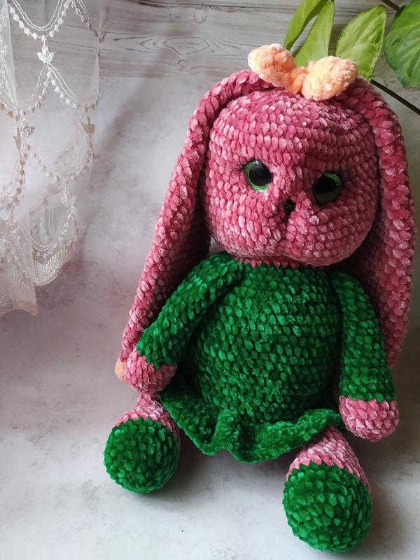 Мягкая вилюровая игрушка имеет длинные уши, рост 45см