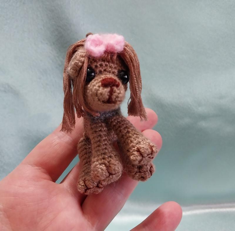 Маленькая собачка йокширский терьер - вязанная мягкая игрушка, высота 7 см. Сложная работа, сделанная по оригинальной схеме. Полностью ручная работа