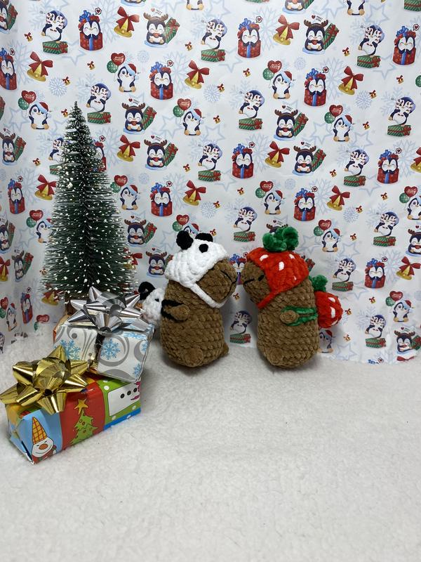 Невероятно милые маленькие плюшевые капибары. Карибарочки одеты под разных персонажей: зайчик, панда, лягушка, пчелка, клубничка, санта и военный. Одеты в шапочку и с наплечником. Цена за 1 капибар. Прекрасный подарок себе, родным и близким.