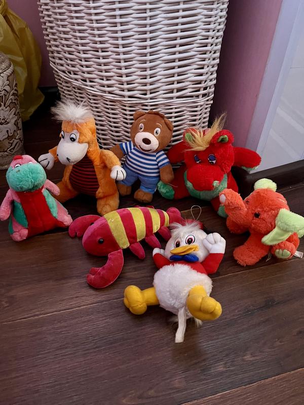 Набор мягких игрушек драконы, слон, мишка Барни, краб