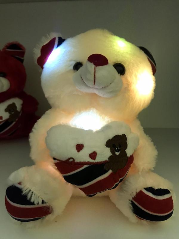 Мягкая светящаяся игрушка мишка Тедди Невероятно приятный и нежный на ощупь плюшевый мишка станет лучшим другом для любимой девушки или ребенка. Днем мишка будет дарить море улыбок и позитива. Ночью теплоту и нежность своим сиянием, охраняя покой. Лучший подарок на детский день рождения, свадьбы, годовщину или на день Святого Валентина. Внутри светодиодное устройство включает в себя более 7 сменных цветов. Цвета: Оранжевый, Розовый, Голубой, Белый Размер: 25 см Особенности: светодиодная подсветка Питание: 2 батарейки типа ААА (в комплект не входят)