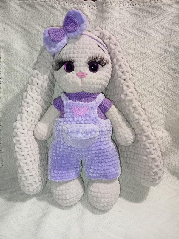 зайчик связан из плюшевой пряжи наполнитель холлофайбер, одежда снимается, сидит, возможен повтор в другом цвете, а также можно заказать дополнительную одежду, рост 30-35см.под заказ