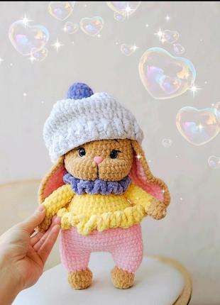 іграшка зв'язана із плюшевої пряжі наповнювач холофайбер, стоїть з опорою, можливий повтор в іншому кольорі, зріст 27см, під замовлення