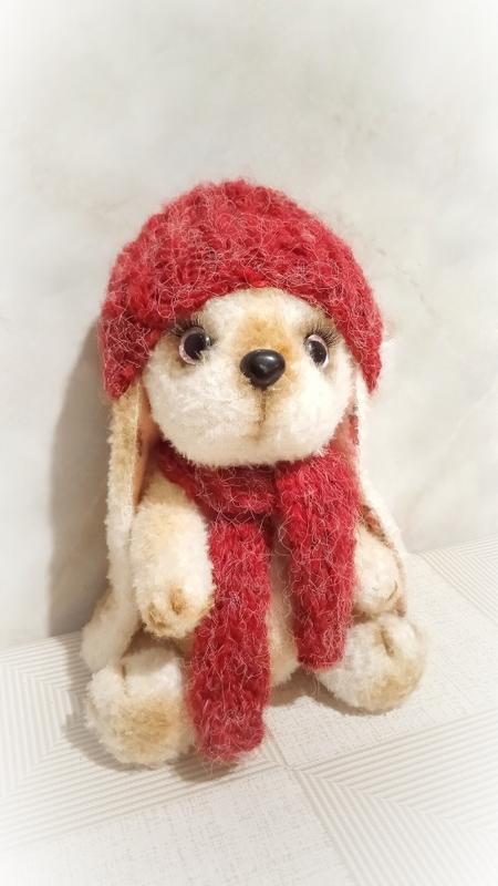 Маленькое щенок породы спаниэль ищет новый дом. Игрушка вязаная крючком из пушистой пряжи, мягкой и приятной на ощупь. Щенок ростом 23 см, голова, нижние и верхние лапки подвижные. Шапочка и шарфик снимаются. Игрушка не предназначена для детей младше трех лет, поскольку есть мелкие детали.