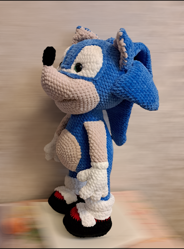 Соник мультяшный персонаж, выполненный из плюшевой пряжи, высота 45 см