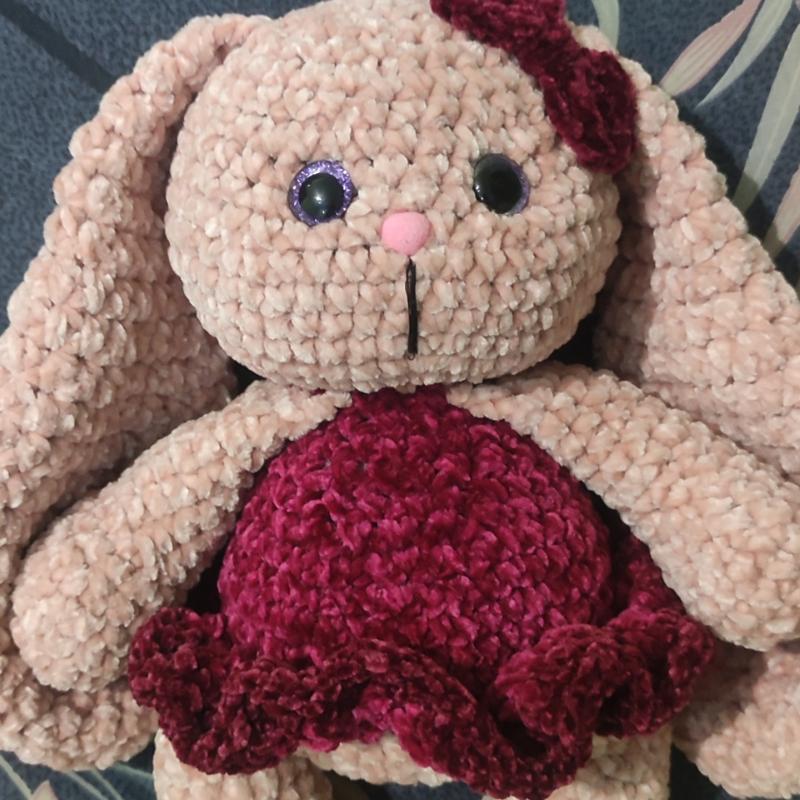 в'язаний зайчик в платтячку, гарний подарунок доньці/дівчині, подрузі або комусь з рідних, висота іграшки 28 см