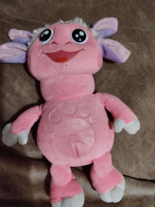 Лунатик розовый. В середине есть коробка с батарейками, и он смеется. Но, пожалуй, сели.