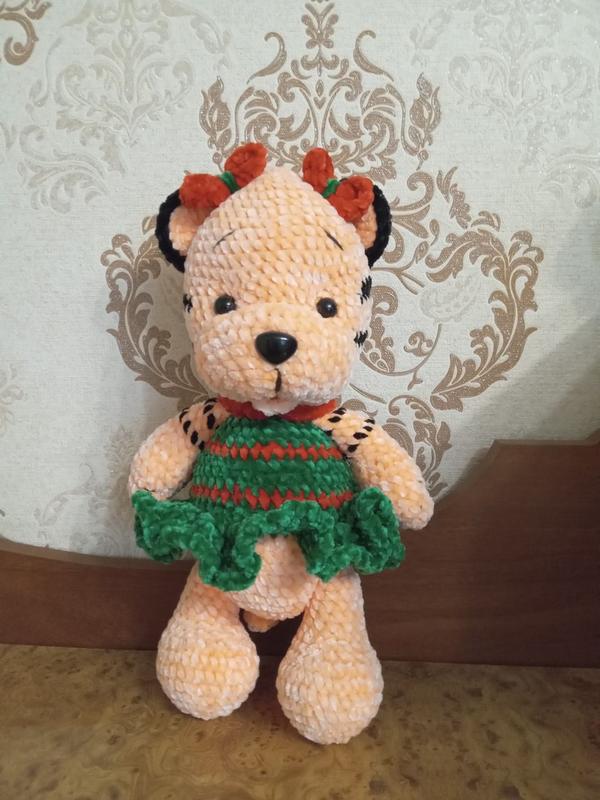 милое тигренок в восхитительном платье из плюша мягкая на ощупь ( ножки двигаются)33 см