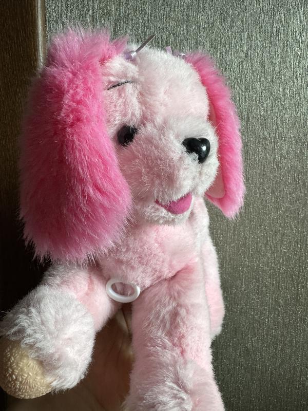 Игрушка под ремонт!!!! Там где батарейка, есть легкое окисление светлого коляра, пружина есть. Поводок не тянется, потому что шея замоталась. Можно играть просто как собачкой! Чистая, состояние нормальное
