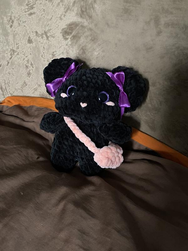Выполнен из плюшевой пряжи, с глазами на безопасном креплении, возможны вариации и различных цветах