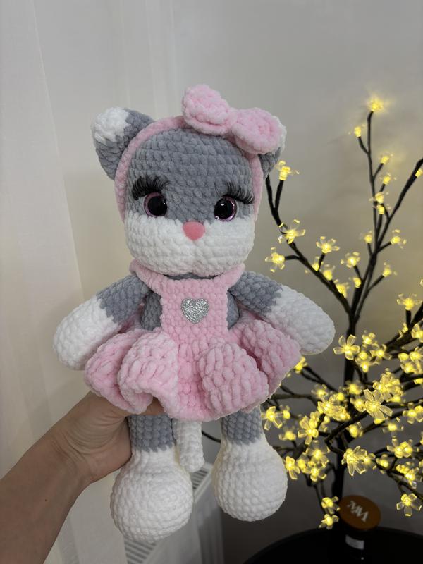 Киця висотою 33 см , очі і носик на безпечному кріпленні, якісна гіпоалергенна пряжа, можливий повтор в інших кольорах