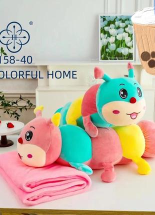 Мягкая игрушка гусеница с пледом