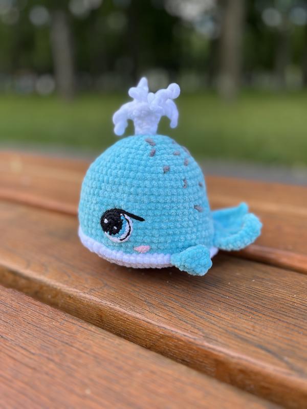 Мягкая вязаная игрушка ручной работы кит Высота игрушки 16 см (без фонтана 12 см) Длина игрушки 16 см (без хвоста 12 см) Не содержит пластиковых деталей, безопасна для детей