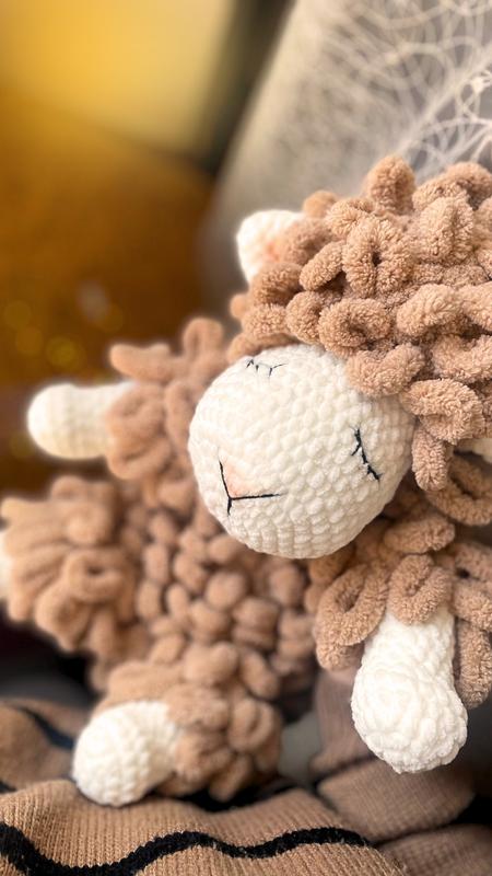 Игрушка, которую не хочется выпускать из рук 🤎🐑 очень мягкая, нежная и приятная. Отличный подарок для ребенка, может стать прекрасной ассоциацией на сон 🛌 Сни с такой игрушкой станут еще слаще 🤭 Рост овечки ~38 см. 🧶 Гипоаллергенная пряжа, полностью безопасная для кожи малыша.