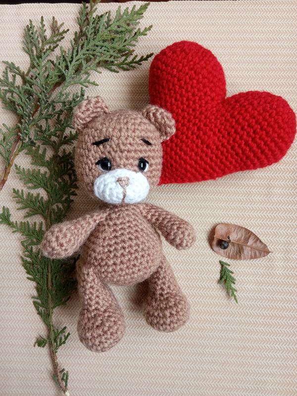 Неповторна ручна робота. Ведмедик зв'язаний з гіпоалергенних ниток, очі на безпечному кріпленні, наповнювач - холофайбер і зерна Кави. Розмір 12,5см. Подаруйте приємні Емоції та аромат Кави