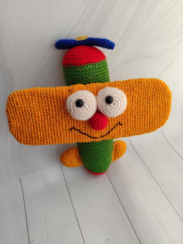 Розмір іграшки 23*24 см. Корпус літака набитий холлофайбером, крила водостійкий картон