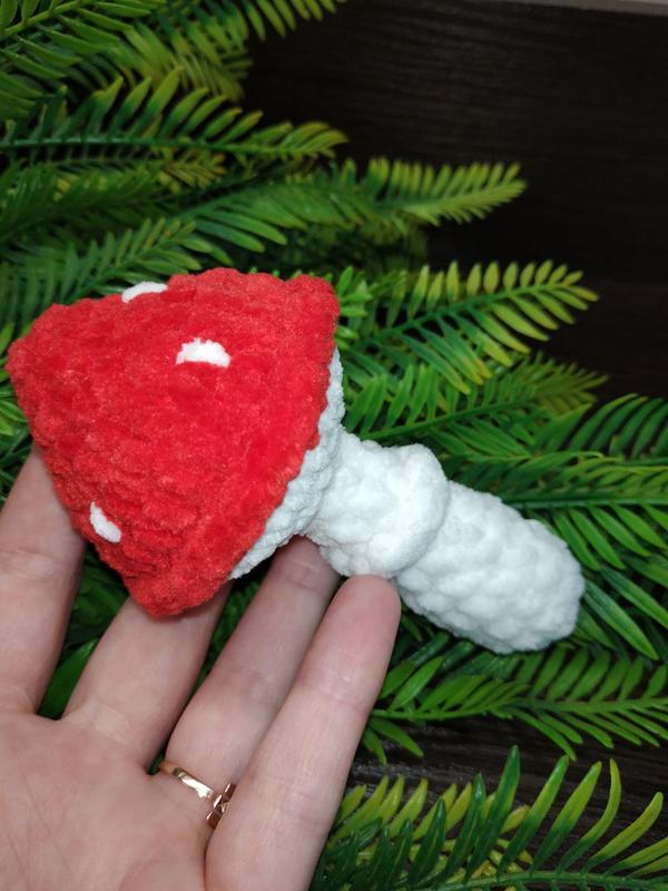 Мухомор из плюша, ручная работа. Размер - 12 см. Использование: для игры, как брелок.