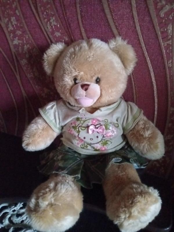 мишка в одежде.футболка со стразами.юбочка в складочку
