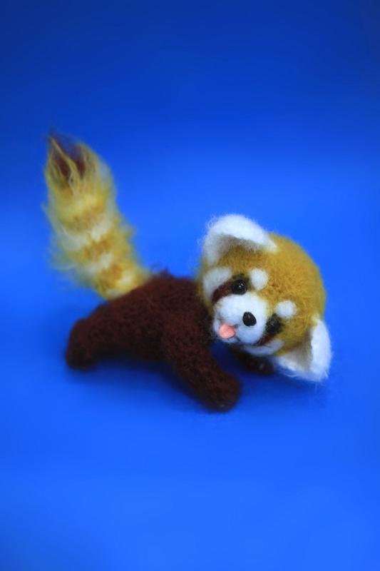 Мягкая игрушка красная панда связана крючком из акриловой пряжи. Размер 13 см. Внутри каркас из медной проволоки, голова на шплинте. Носик и язычок из полимерной глины. Подарочная упаковка, ручная работа.
