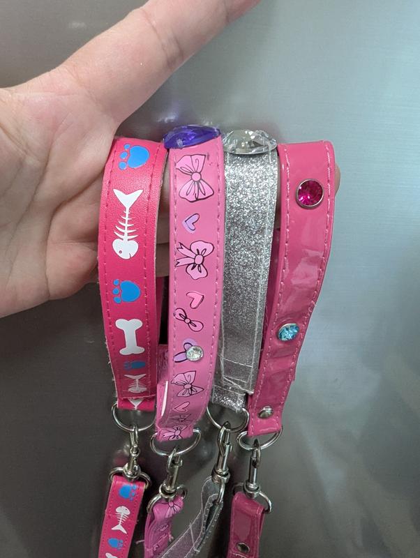 розовый поводок для игрушечного щенка со стразами