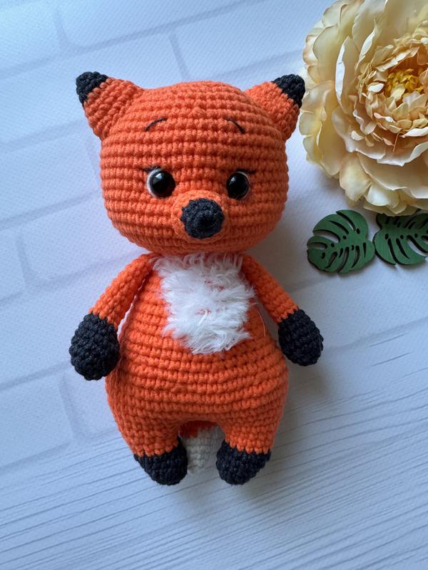 Вязаная игрушка лисичка станет отличным подарком для вашего ребенка. Размер 16 см
