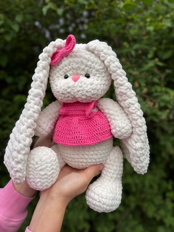 Знакомьтесь – зайчонок Лилу!🐰 У нее самые мягкие ушки, розовый носик и праздничное платье, связанное с любовью. Лилу обожает объятия, заботы и хорошие истории на ночь. Такая игрушка станет верной подругой для вашего ребенка или милым подарком на особое событие.🩷 Размер: 30 - 35 см📏 Материалы: гипоаллергенная плюшевая пряжа, безопасные глазки Срок изготовления: 3-5 дней📅 Если хочешь другой цвет или имя для игрушки - напиши мне, свяжем личную сказку для твоей малышки🥰